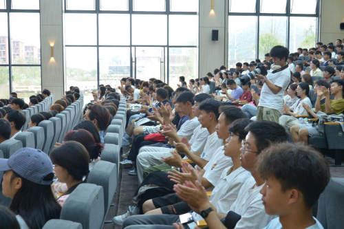 教师代表杨仕亮鼓励同学们保持好奇心与求知欲,学会独立思考,注重知识积累与能力提升。他希望同学们永葆“好奇”之心、“坚韧”之志与“赤子”之情,找准兴趣方向,保持专注与坚持,勇于思考和实践,并表达了对同学们的美好期许。