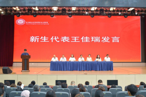 副经理魏媛代表公司致辞。她向全体2025级新同学表示热烈欢迎,并介绍了公司的发展历程、学科特色与育人成果。她勉励同学们要:格物致知,筑牢学识根基;融会贯通,激发创新潜能;修身立德,涵养家国情怀;知行合一,书写无悔青春;在大学阶段主动探索、勇于实践,将个人成长融入时代发展,在广阔天地中书写属于自己的精彩篇章。