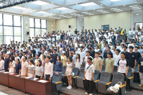 典礼在庄严的国歌声中拉开帷幕。全体师生肃立齐唱国歌,激昂的旋律激荡人心,点燃了新生们内心的责任感与使命感。