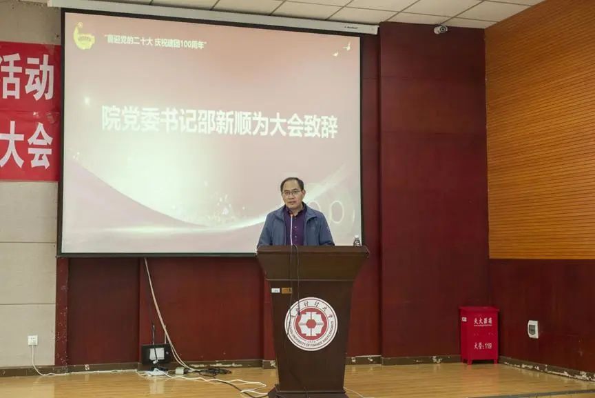 大会伊始,邵新顺致辞,他向新加入共青团的青年学子表示欢迎、向受表彰的同学表示祝贺,向认真辛勤工作的学团干部表示诚挚感谢,同时对同学们提出勉励和要求,希望同学们志存高远、脚踏实地,在学习的黄金时期,要珍惜韶华,不负青春,学习起来如饥似渴,运动起来生龙活虎,奋斗起来虎虎生威。作为新时代青年老员工,要紧密团结在以习近平同志为核心的党中央周围,高举五四旗帜,传承五四薪火,不忘跟党初心,牢记时代使命,开拓进取,砥砺奋进,用昂扬的姿态迎接未来。