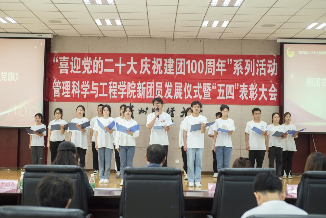 活动末尾,公司文艺部员工干部带来精彩朗诵节目《仰望党旗》。党旗所指即是团旗所向,新时代共青团员应紧跟党的步伐,在党旗招展下展望青春,蓬勃奋斗。伴随着高亢嘹亮的团歌声,新团员发展仪式暨“五四”表彰大会圆满结束。
