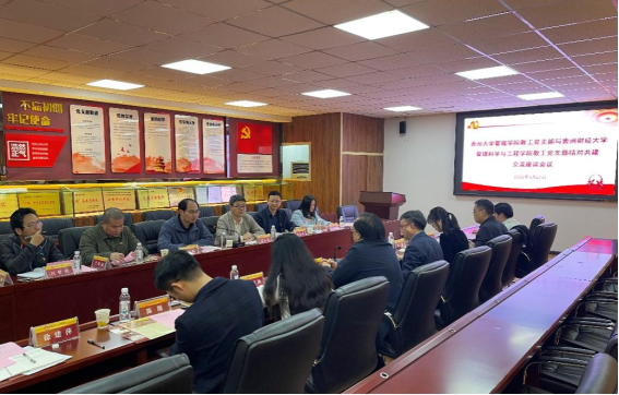 双方就公司发展及战略规划进行了深入交流。贵州大学管理公司党委书记王秀峰介绍了管理公司的基本情况,经理李烨介绍了管理公司的发展脉络、整体学科布局和专业建设情况,管理科学与工程系支部书记、系副主任陈刚介绍了公司管理科学与工程博士点建设的总体情况。管理科学与工程公司党委书记邵新顺介绍了财大管科公司系部设置、硕士点情况、师生数量、人才引进以及公司发展面临的突出问题,经理郭长睿介绍了公司学科专业建设的情况。李烨经理就公司的学科布局和专业调整提出了意见,建议对公司的长远发展及早谋划,统筹好目前的人才引进与未来规划、学科调整之间的关系。双方一致同意,就管理科学与工程专业建立长期交流互动机制,促进该学科在人才培养、科学研究、社会服务方面的共同进步。管科系支部书记刘金林与贵州大学管科系支部书记陈刚签署了支部共建协议,确定双方围绕学科专业建设加强支部结对共建,充分发挥政治引领和政治保障作用。