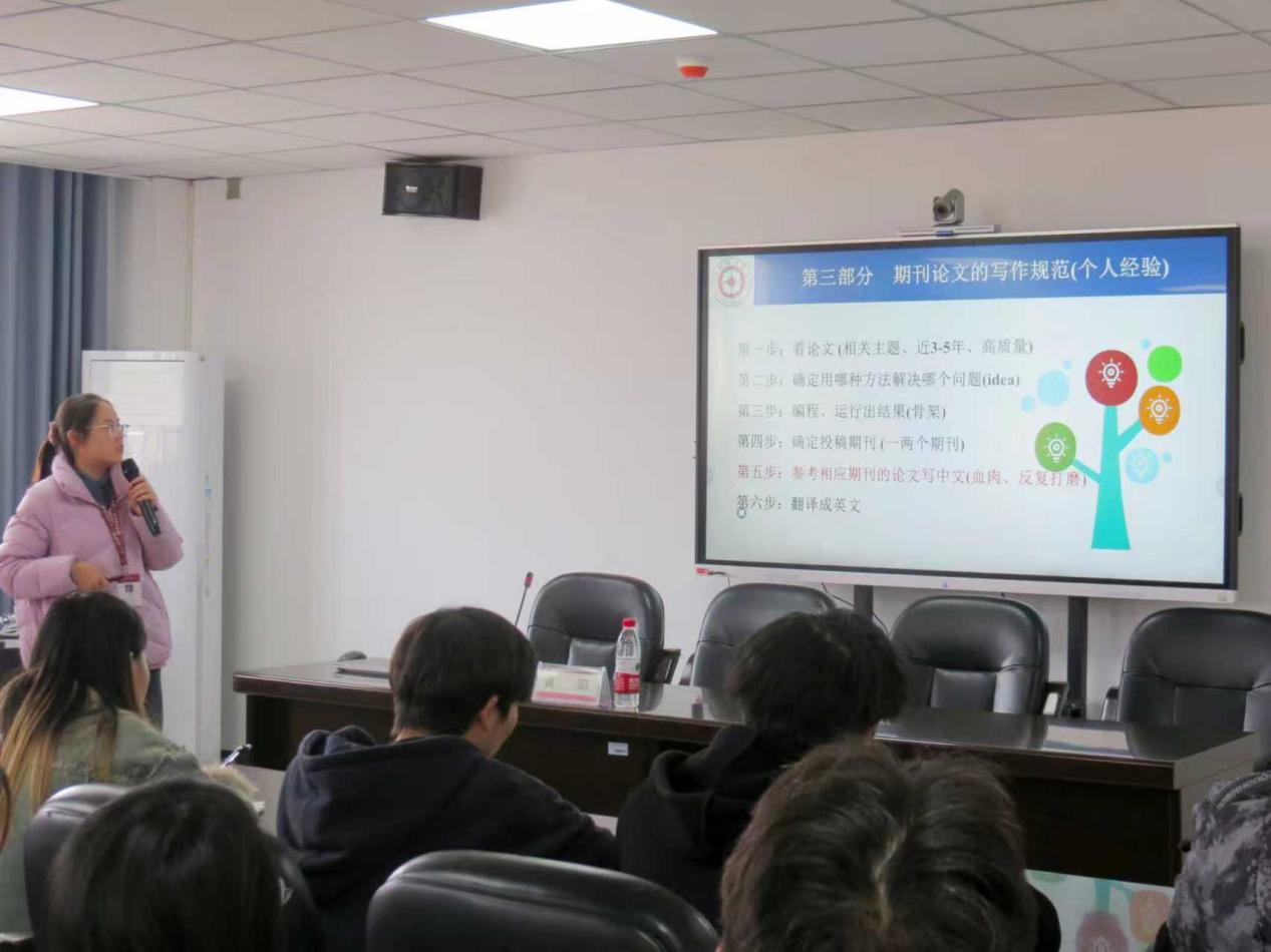 黄老师深耕管理科学与工程学科多年,以第一作者或第二作者在国内外期刊上发表7篇论文。在分享中,黄阳老师围绕国内外学术数据库介绍、期刊分类、期刊论文写作规范以及毕业论文写作规范等四个核心模块展开系统讲解。她首先介绍了高效的文献检索方法和实用网址,帮助同学们快速获取研究资源,还解析了普通期刊与核心期刊的特点,强调写作前需明确投稿方向。针对实证类、方法类论文,黄老师详细讲解了摘要、引言等关键部分的写作要点,并结合高校毕业论文的具体要求,梳理了整体结构框架与格式标准。讲解过程中,黄阳老师结合具体案例剖析常见写作误区,为同学们提供了全面而实用的学术写作指导。现场同学认真聆听、积极互动,学习氛围浓厚。