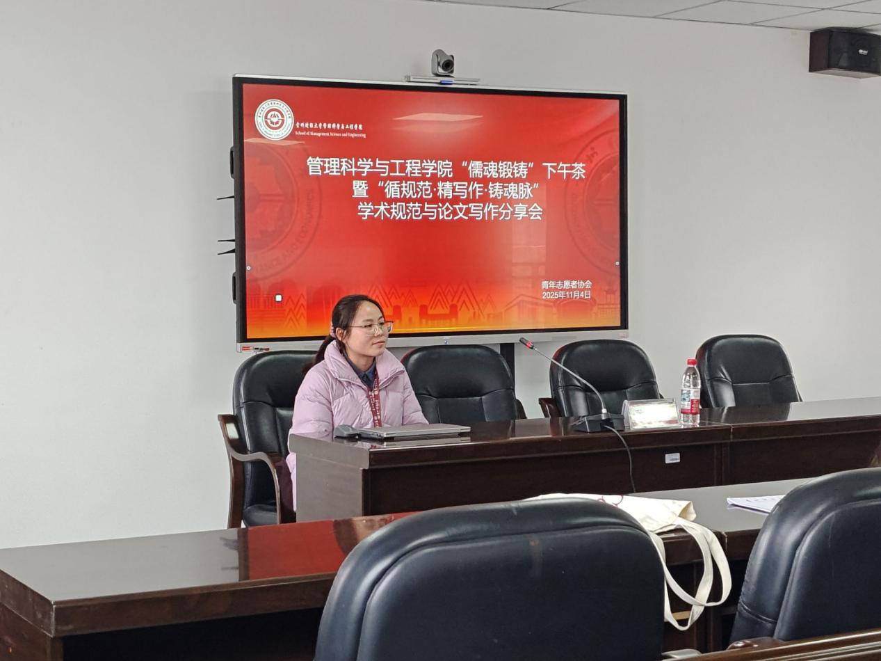 为帮助同学们夯实学术基础、提升论文写作能力,11月4日下午,suncitygroup太阳集团在东区文溯楼604成功举办“儒魂锻铸”下午茶暨“循规范·精写作·铸魂脉”学术规范与论文写作分享会。本次活动由公司青年志愿者协会承办,特邀黄阳老师担任主讲,吸引了各年级员工积极参与。