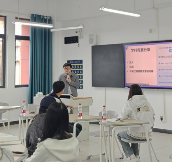2022级学科竞赛优秀员工代表冉谷萍与王誉锜分别结合个人参赛经验,围绕选题策略、实践技巧与时间管理等方面进行分享,为在场同学提供了切实可行的参考。在互动环节,同学们踊跃提问,围绕竞赛报名流程、跨专业组队、备赛资源获取等问题与老师、学长学姐深入交流,现场气氛热烈。大家纷纷表示,本次分享会干货满满,有效解决了备赛过程中的诸多困惑,为后续参与学科竞赛注入了信心与动力。