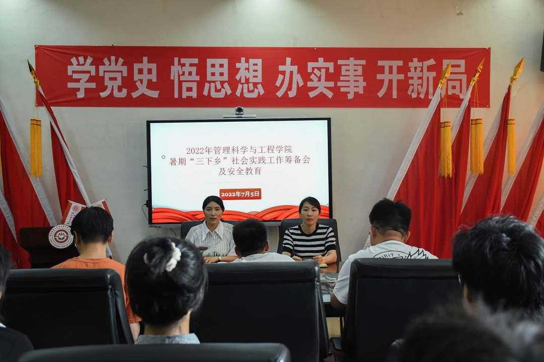 会议伊始,吴沛丽详细介绍此次“三下乡”社会实践活动实践地情况、活动内容及预期活动成效,随后主要从安全问题、纪律问题等方面提出三点要求:一是谨记在社会课堂中“受教育、长才干、作贡献”,希望队员们做到理论联系实际,为助力乡村振兴、围绕“四新”主攻“四化”做贡献;二是要发扬艰苦奋斗、团结合作的精神,做到吃苦耐劳、尊重当地民俗;三是提高安全意识、严守团队纪律;四是要注重宣传、善于总结、收获成长。