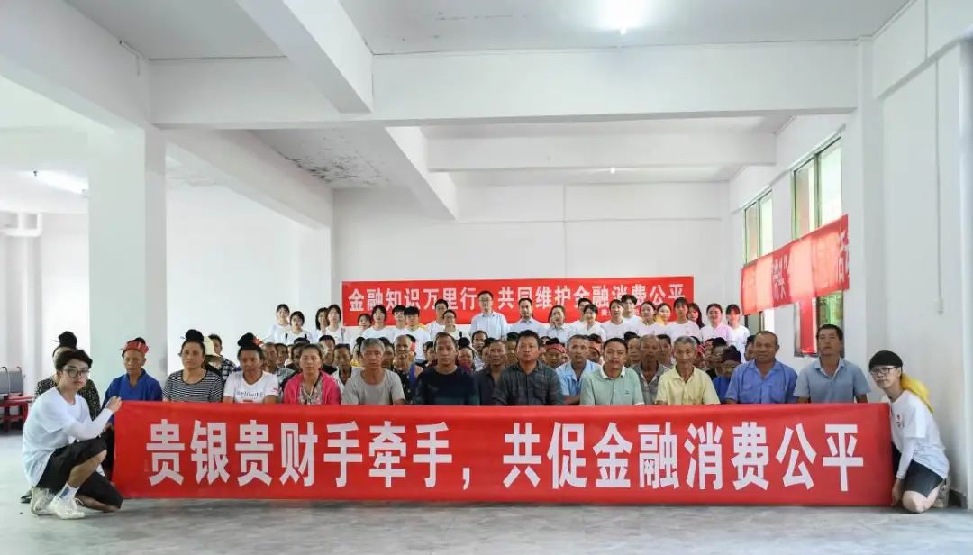 活动前,贵州银行总行个人业务部金融知识宣讲师、团委副书记康睿、贵州银行黔东南分行团委书记龙安波、贵州银行黔东南分行团委宣传委员石莉、贵州银行黔东南分行个人业务部消保经理黄林凤贵州银行台江支行个人客户经理邰圆红向村民发放金融知识手册,由公司暑期“三下乡”“星火乡筑”实践团为当地村民带来朗诵节目——《仰望党旗》,紧接着贵州银行台江支行工作人员向村民们讲解有关货币、投资、保险和金融机构等基本概念,同时普及了存贷款、银行卡安全知识以及如何进行低风险理财等知识,为村民们答疑解惑,帮助村民们提高金融风险防范意识。除此之外,成员们还宣传了电话诈骗、冒充亲友要求转账、非法集资诈骗等多种常见的诈骗方式,向村民们耐心讲解识别金融诈骗、保护个人信息的重要性。最后,实践团队员向村民们分发肥皂、牙刷等小礼品,现场宣传气氛热烈,村民积极参与其中。