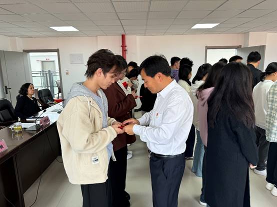入党宣誓后,胡张林为新党员佩戴了党员党徽,颁发了《中国共产党章程》。胡张林表示,我们隆重举行新党员入党宣誓,就是要用仪式感提醒每一名党员,入党宣誓是非常庄重、严肃的事情,象征着党员政治生命开始,每一名党员都要像爱惜生命一样,珍惜自己的政治生命;他对全体党员逐句阐释了入党誓词的深刻含义,要求同学们深入学习党的历史,不断提升理论水平、学业水平,用实际行动践行诺言,为党旗增辉;他要求同志们时刻坚守共产党员的政治品格,在学习、工作、生活等方面都发挥先锋模范作用,要讲政治、要积极作为,要严守纪律,做一名忠诚干净担当的共产党员;
