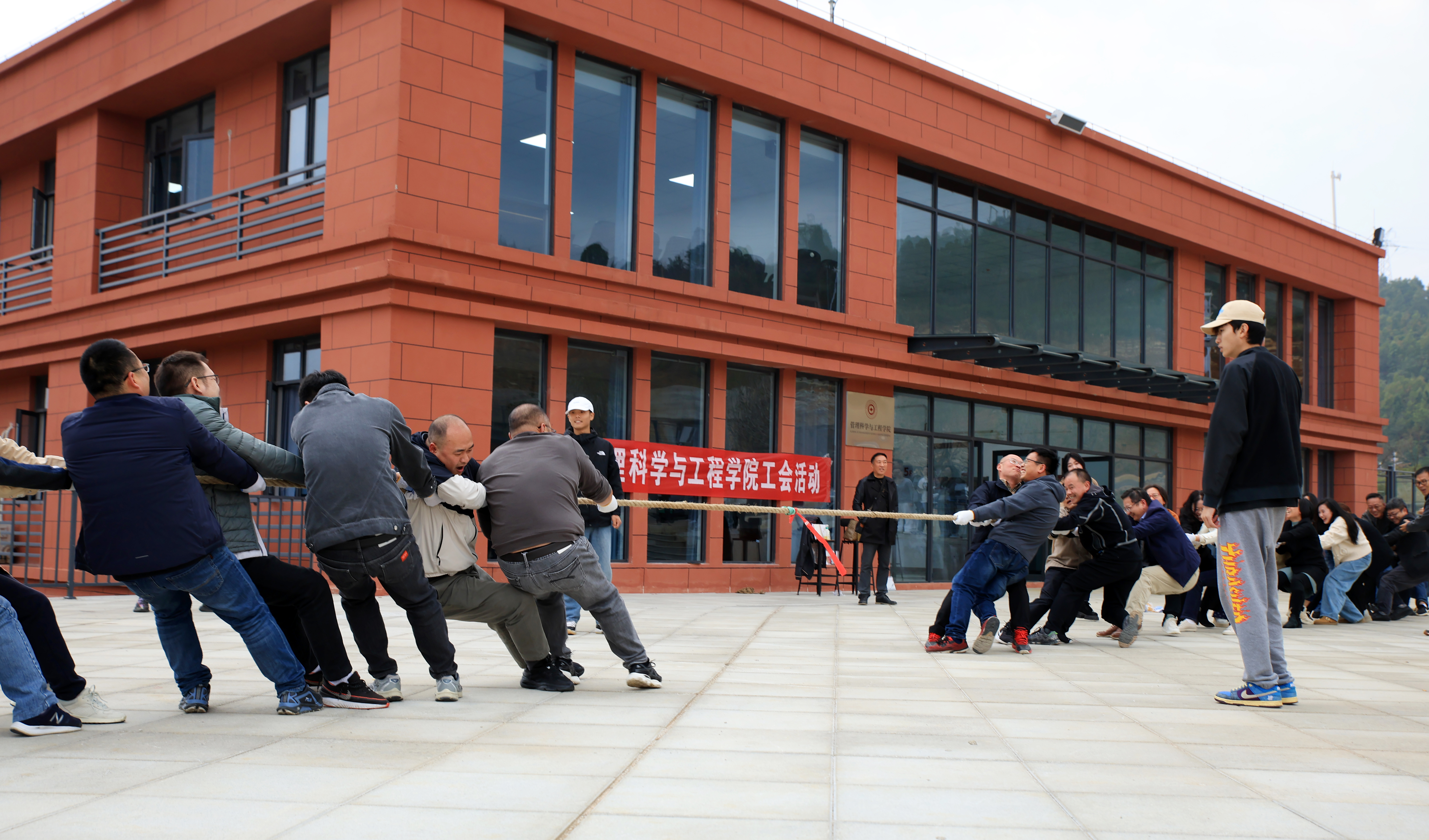 比赛过程中,各系参赛队员努力拼搏,无论是场上还是场下,气氛都异常激烈,现场啦啦队的师生个个热情高涨,呐喊助威给比赛增添了一抹亮色,每一声呐喊都带来一股力量。经过努力拼搏,管理科学与工程系在拔河比赛中获得了第一名。比赛结束后,公司工会给各获奖队伍颁发奖品。各获奖队伍以及全院教职工的合影将整个活动划上完美的句号。