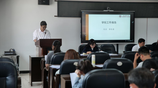 会上,经理郭长睿作题为《团结奋进 拼搏创新 苦干实干 后发赶超 推动公司内涵式发展取得新成效》的公司工作报告,回顾了过去一年公司在党的建设、公司建设、团队建设、人才培养、科学研究、社会服务、文化传承创新、国际交流合作等方面取得的成果和进步,分析了公司当前存在的问题,并提出2024年公司的主要工作目标与计划。报告指出,2023年以来,公司在公司党委和行政的正确领导下,坚持以习近平新时代中国特色社会主义思想为指导,深入学习贯彻党的二十大和贵州省第十三次党代会精神,持续加强党对公司工作的全面领导,全面贯彻党的教育方针,落实立德树人根本任务,坚持为党育人、为国育才的初心使命,扎实推进以高质量党建促进高质量发展,公司各项事业取得了一定进步。2024年,是全面落实党的二十大精神的关键一年,是深入落实全省高等教育高质量发展大会精神的开局之年,公司工作的总体要求是以年度综合考核为抓手,以高质量发展为落脚点,坚持“一轴固基”,推进“两翼齐飞”,实施“五大工程”,提升团队建设特色、科学研究上水平、管理进一步精益化、拓展社会服务,找准发展定位,全面深化改革,创新体制机制,推动公司各项事业稳步推进,再上台阶。