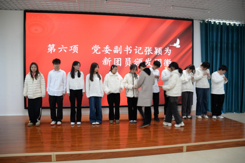 公司党委副书记张颖为新团员逐一颁发并佩戴团徽。金灿灿的团徽佩戴在胸前,既是荣誉的象征,更承载着沉甸甸的政治责任,清晰指引青年学子“听党话、跟党走”的前进方向。