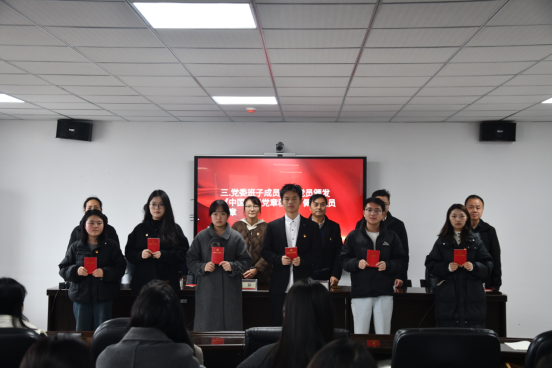 参加宣誓仪式的全体新党员倍感振奋、深受鼓舞。新党员代表汪田归结合所学专业,紧扣青年学子“学术报国” 的初心使命畅谈感悟与心声,郑重表达了身为员工党员,坚守科研初心、以学术所长服务人民、以专业力量赋能发展建设的坚定决心。他表示,今后将从强化理论学习、深耕学术科研、融入集体生活、投身社会实践等方面从严要求自己,时刻对标党员标准锤炼品格、增长才干,立足学业岗位争做合格党员,奋力以优异成绩回报党组织的培养与重托,永葆入党初心、勇担使命重任。